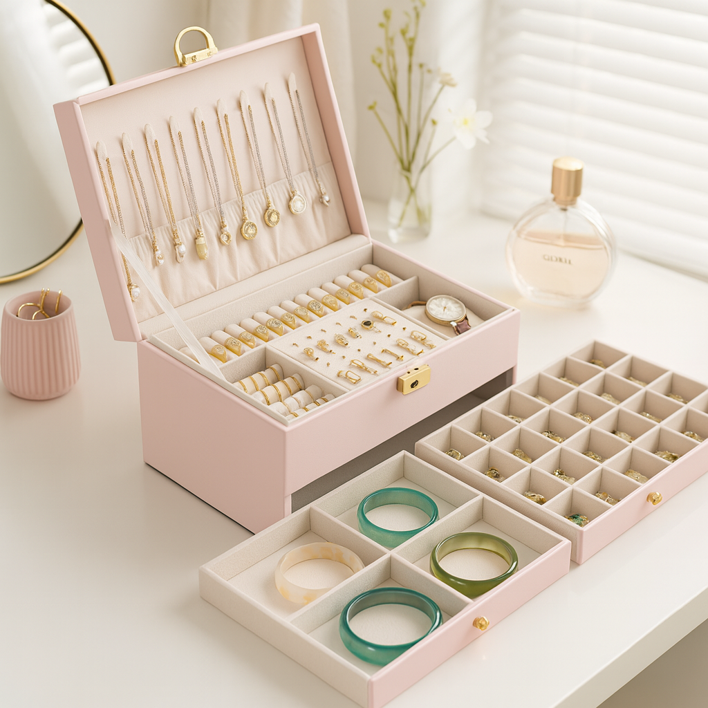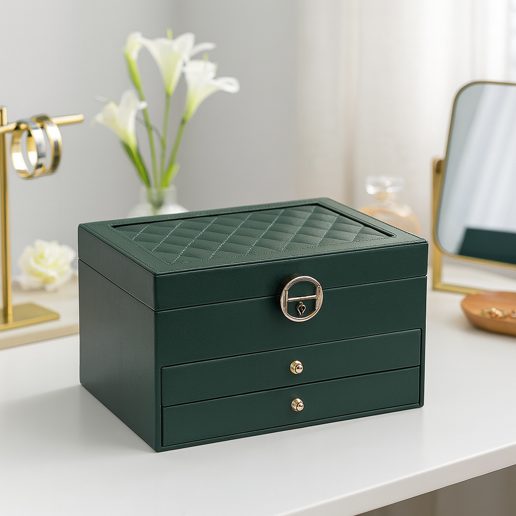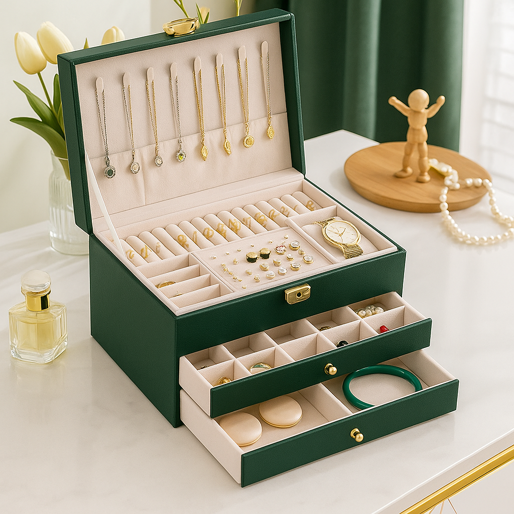 ✨ Transformez votre rituel de beauté en un moment de luxe et de sérénité grâce à cette boîte à bijoux élégante et intemporelle.