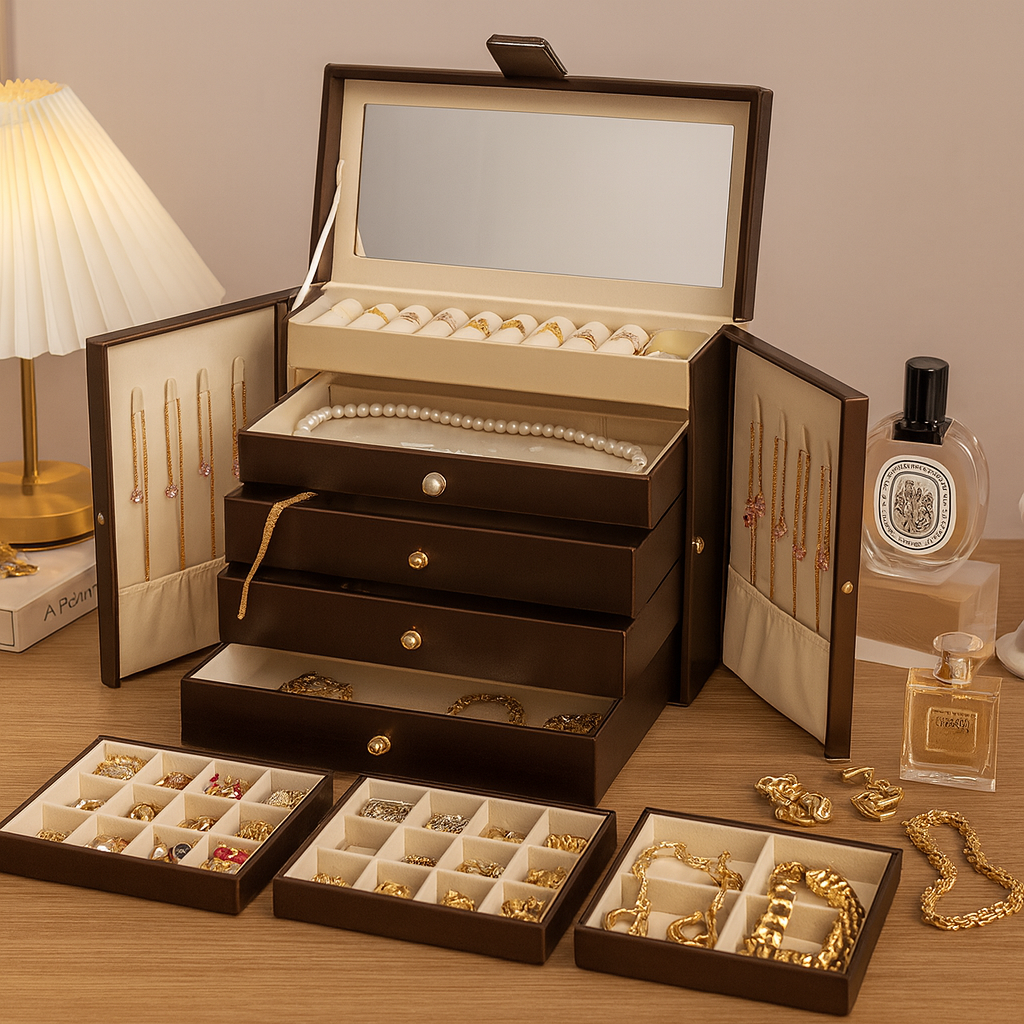 Boîte à Bijoux Élégante en Cuir PU – Rangement Pratique et Raffiné ✨